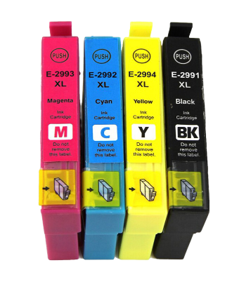 Pack de 4 cartouches d'encre de haute qualité compatible avec Epson T2991, T2992, T2993, T2994, ce pack contient: