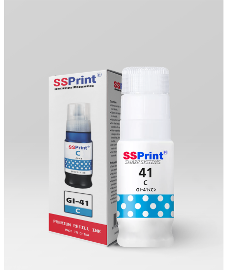 Encre compatible Canon GI-41 cyan pour imprimantes Canon série G. Qualité d'impression optimale et rendement économique.